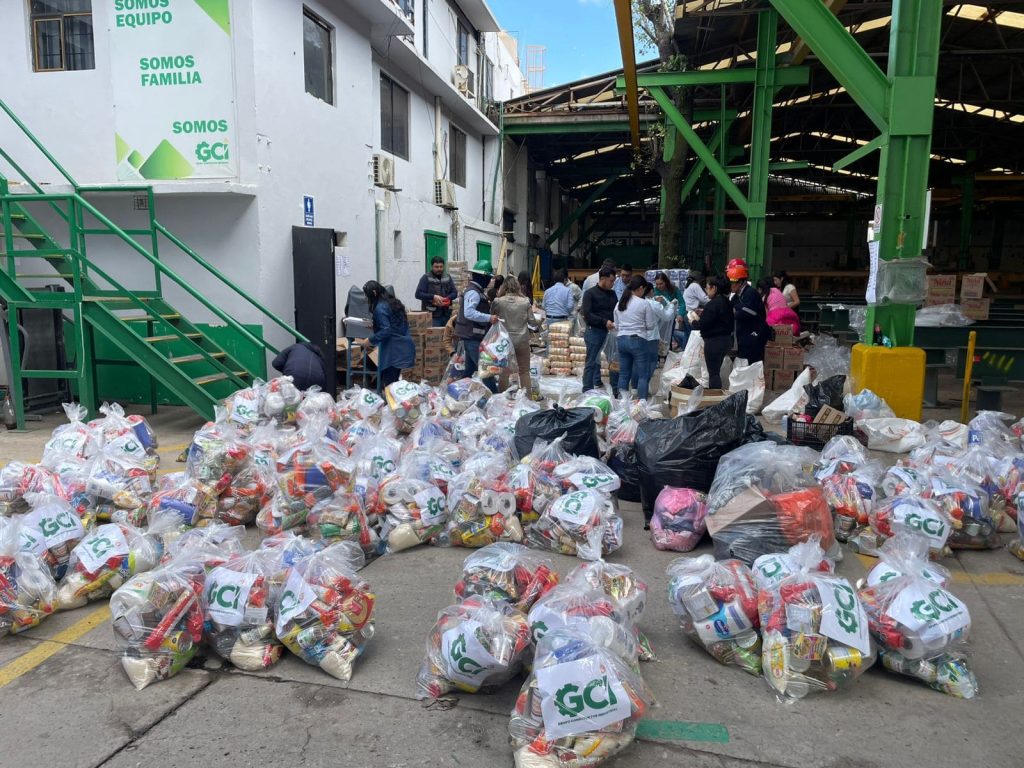 •Donaciones de víveres, agua y materiales de primera necesidad entregadas a los centros de acopio locales.